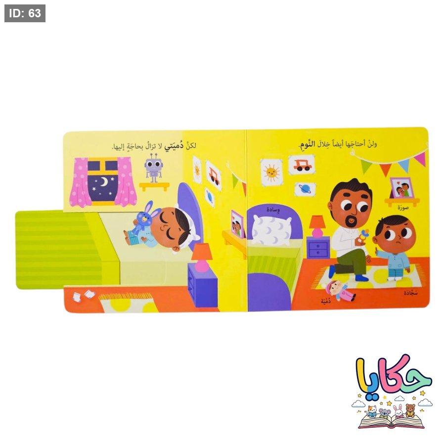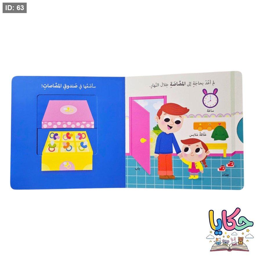 صفحات متحرّكة ونوافذ: يحتوي الكتاب على 5 صفحات تفاعلية تشجع الطفل على الاستكشاف وتنمي مهاراته الحركية الدقيقة.
