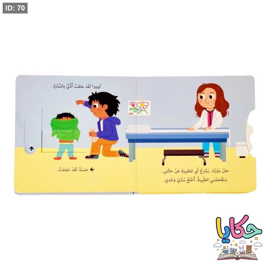أَنا ذاهِبٌ إِلى العيادَةِ اليَوْمَ. أَخْلَعُ سُتْرَتي، وأَفْتَحُ فَمِي، وأَتَنَفَّسُ شَهِيقاً وزَفِيراً. كِتابٌ لِتَعلُّمِ زِيارَةِ الطَّبِيبِ بِثِقَةٍ!
