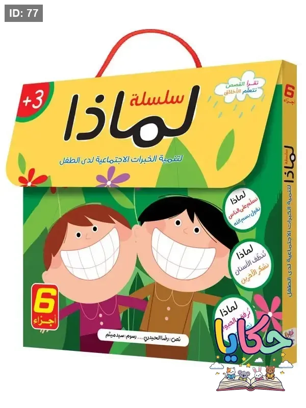 تشرح “سلسلة لماذا؟/ 6 أجزاء” سلوكيات إيجابية للأطفال بطريقة إحالة وممتعة. يكمل كل جزء من العقد الوقوف ماما من حياة الطفل. تحتوي على سلسلة على ست قصص تربوية، تركز كل قصة على التحكم واحد فقط. قصة مسلسل الطفل بنفسه أو مع والديه في جو تفاعلي مشجّع. وسرعان ما بدأ الطفل بالإصابة من خلال السلسلة البسيطة للأحداث. تحمل الطفل اعترافات الشخصيات، ثم يقارنها بتصرفاته اليومية. ربط الطفل بين الكلمات والكلمات في كل تعليم مشهدي. يتفاعل الطفل مع الشخصيات ويتأثر بشكل مباشر. يكرّر الطفل سلوكه في السؤال ويدرك فائدته. يسأل الطفل إعادة القصة مرات عديدة لأنه يجب أن يكون لها. يكتسب الطفل الثقة بنفسه عند تطبيق ما تعلمه في القصة. تناسب "سلسلة لماذا؟/ 6 أجزاء" للأطفال من عمر 3 إلى 7 سنوات في الروضة أو المنزل.